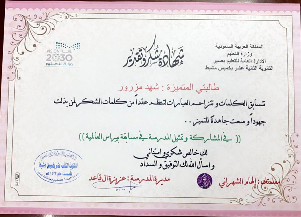 بيبراس 2011 عدد الطالبات المشاركات 8