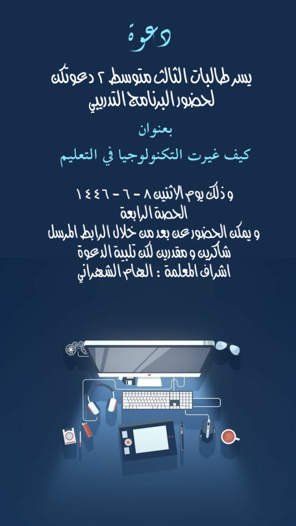 | الهدف العام | عزيز فهم دور التكنولوجيا في تطوير التعليم وتحسين جودته من خلال استعراض التحولات التي أحدثتها التكنولوجيا في أساليب التدريس، التعلم، وتقييم الطلاب، وإبراز الإمكانيات التي تقدمها الأدوات الرقمية في دعم العملية التعليمية. |