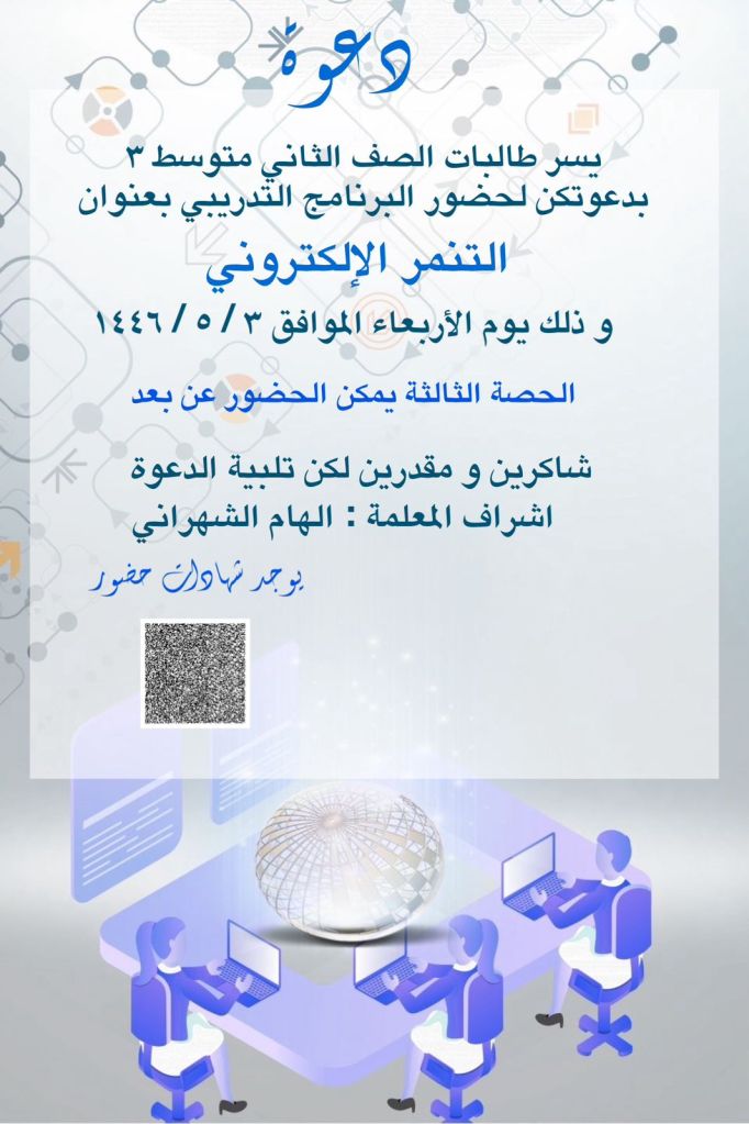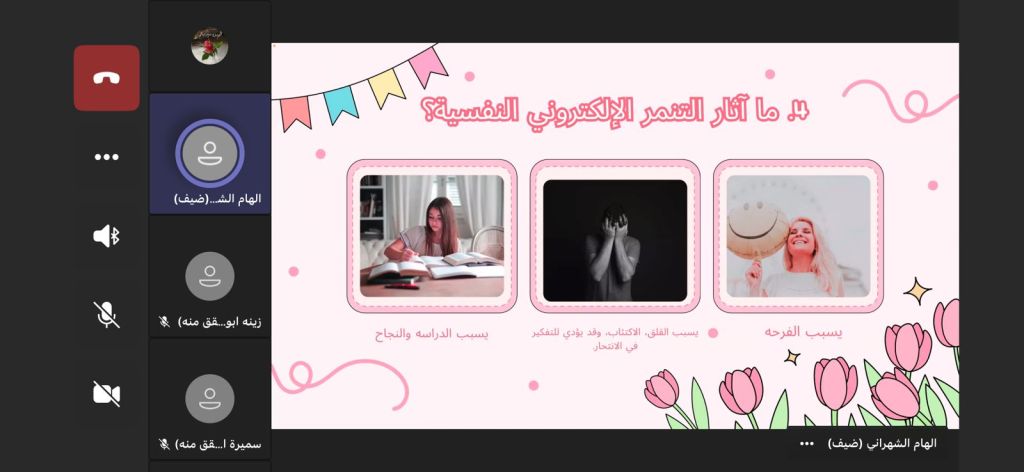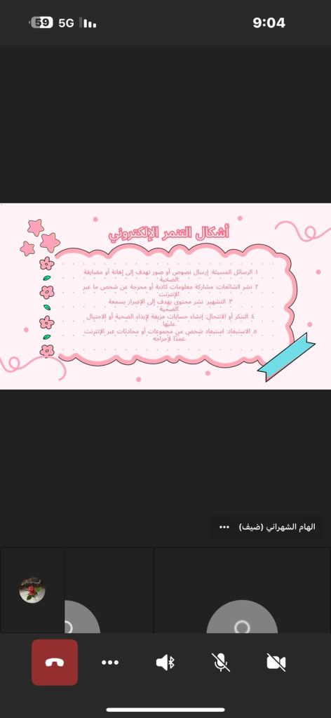 | الهدف العام | التوعية بالتنمر الإلكتروني هو إنشاء بيئة رقمية آمنة ومحترمة تقل فيها ممارسات التنمر الإلكتروني، وتعزيز استخدام الإنترنت ووسائل التواصل الاجتماعي بطريقة إيجابية ومسؤولة تحمي حقوق جميع الأفراد وتدعم صحتهم النفسية والاجتماعية. |