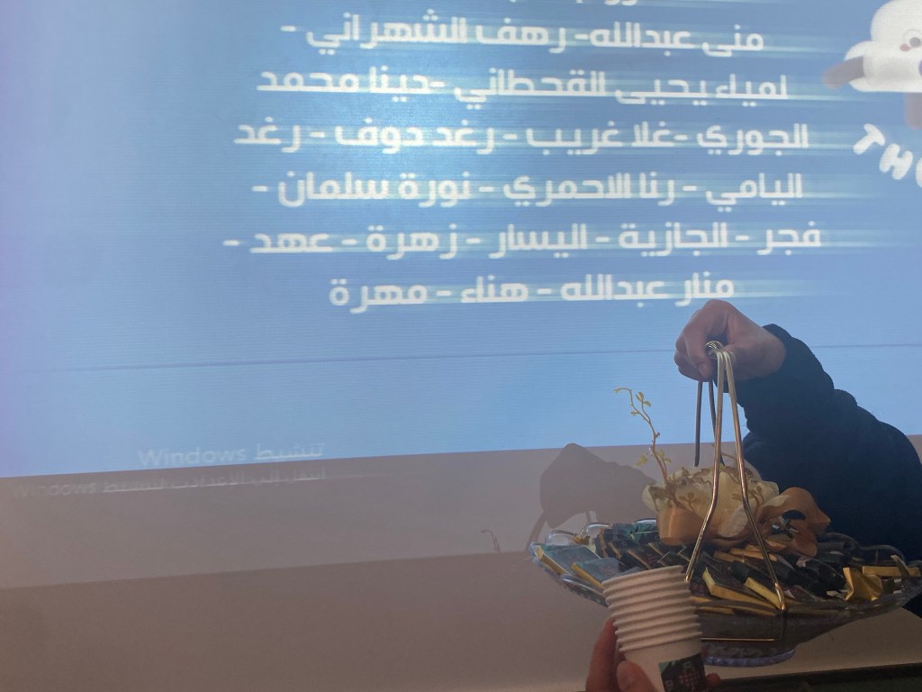 الطالبات المفذات للمشروع : الصف ثاني ثانوي عام ٢ : منى حكمي – رهف خالد – لمياء – دينا – الجوري – غلا غريب – رغد دوف – رغد اليامي – رنا – نورة – فجر – الجازية – اليسار – زهرة – عهد – منار – هناء – مهرة