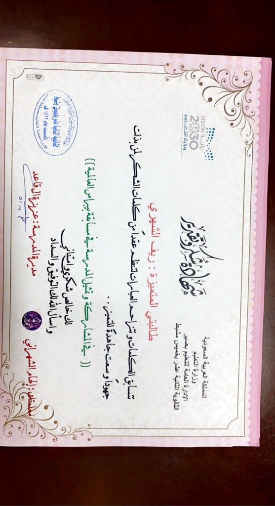 شهادات الشكر والتقدير
